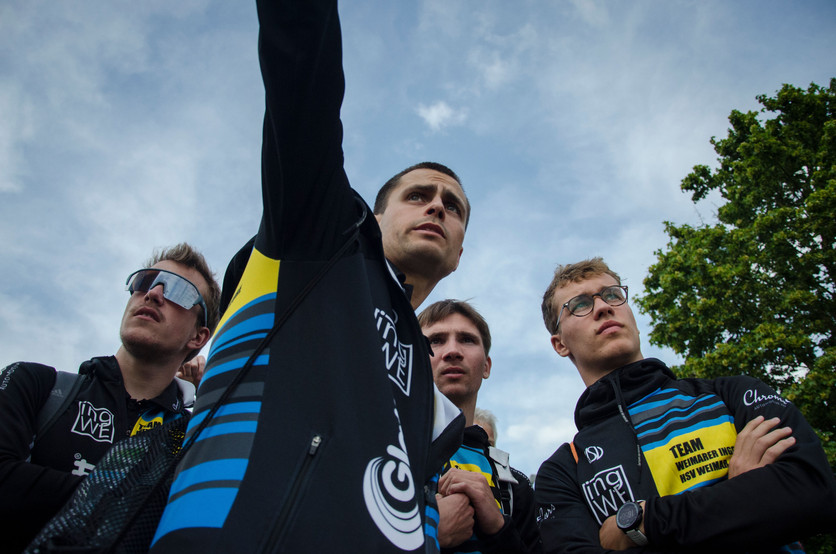 Die Taktik war recht einfach: Das erste Paar (Alex & Richard) muss so lange es geht vorne dabeibleiben und wenn möglich zusammen an uns (Aaron & mich) übergeben, damit wir taktisch ein paar mehr Möglichkeiten haben, da dann nur der Schnellere von uns beiden das Teamergebnis bestimmt.